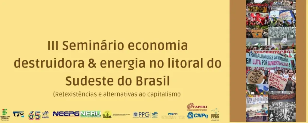 Tendo estes pontos em vista, nos dias 6, 7 e 8 de novembro de 2025, a Universidade Federal Fluminense (UFF), o Instituto Federal Fluminense (IFF) e a Universidade Federal do Espírito Santo (Ufes) promoverão o III Seminário Economia Destruidora & Energia no Litoral do Sudeste do Brasil: (re)existências e alternativas ao capitalismo, em Campos dos Goytacazes, Rio de Janeiro.